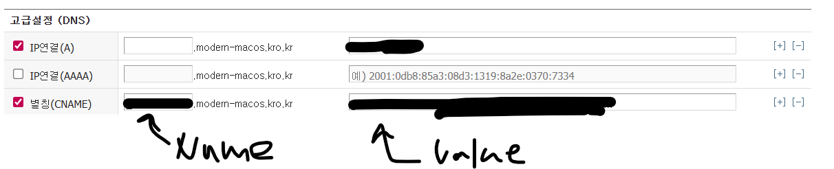 - 주의: 그대로 복사했을 때 name은 맨 뒤에 도메인부분을 빼야하고, value는 마지막에 온점 빼야한다